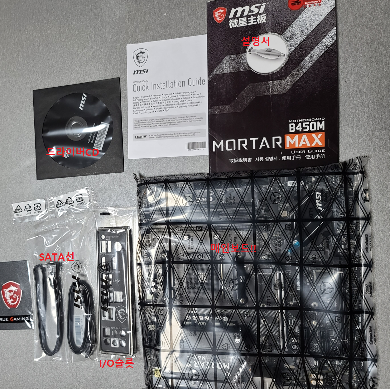 메인보드 박스 까보면 보통 구성은 이렇게 됩니다.
