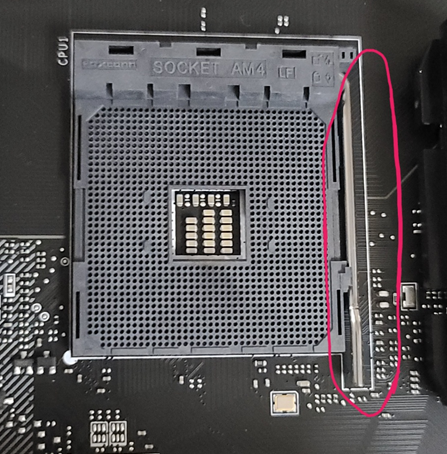 메인보드 CPU 꽃는 공간의 모서리 부분도 자세히 들여다보시면 하나가 다른 것을 확인할 수 있습니다.